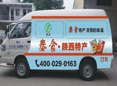 陕西秦食实业有限公司作为专业从事陕西地方特产及特色旅游食品的生产及运营商,其消费群体主要是外地来陕人员及当地有消费需求的人群,我公司数十辆物流配送车天天穿梭在各大街小巷,利用车身广告这一经济有效的流动广告形式,可以有效地提高公司产品的传播与认知度及品牌知名度。为此,我公司在分析调研和多家比较的基础上,选定专业的车体广告公司,分批次完成了公司所有在用物流配送车辆车身广告的设计、制作、贴装工作。车身广告只是公司加强广告宣传的一个举措,公司今后将在这方面加快步伐、加大力度,以期在提高传播效应、提升品牌形象、扩大知名度方面发挥更大更好的作用。